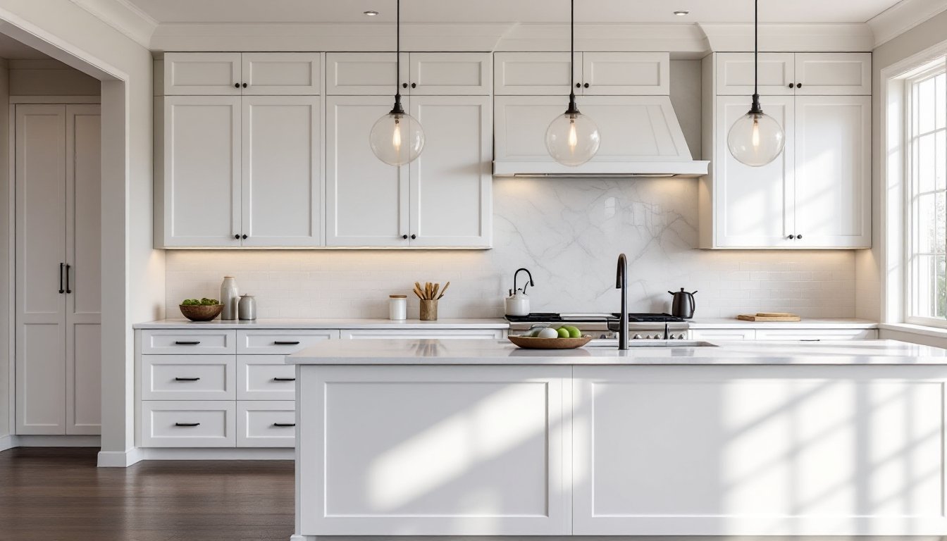 Lighting is where a lot of DIYers miss the mark, and Olsen doesn’t. Her kitchens layer light: ambient overhead fixtures (often simple pendant lights or a semi-flush ceiling mount in brushed metal), task lighting under cabinets aimed at countertops and the sink, and often a statement light fixture over an island.